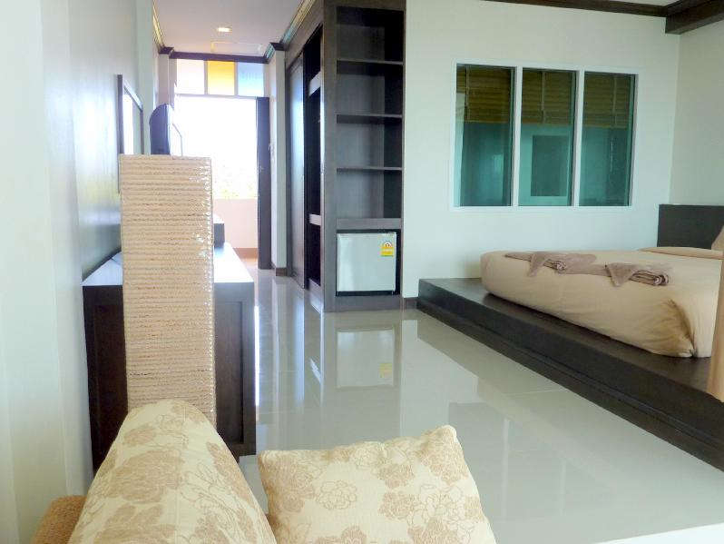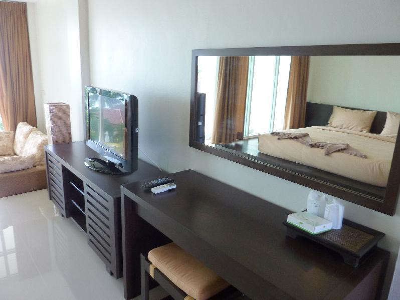 ด้วยโคมไฟตั้งพื้นขนาดใหญซึ่งอยู่ถัดจากโทรทัศน์ที่มีเคเบิ้ลหลากหลายช่องให้คุณได้เลือกทั้งในไทยและต่างประเทศ ทำให้โซฟาที่สุดแสนสบายพร้อมด้วยวิวทะเลสุดแสนโรแมนติคในช่วงยามเย็น อย่างหาที่ไหนเลิศกว่านี้ไม่ได้แล้ว ระเบียงห้องมีที่นอนอาบแดดอยู่สองที่ให้คุณได้นอนอาบแดดในยามรุ่งเช้าที่และนอนพักผ่อนในช่วงเวลากลางวันพร้อม ด้วยวิวทะเลที่สวยงามที่สุด ทั้งนี้ฉากที่กั้นระหว่างห้องคุณกับห้องเพื่อนบ้านนั้นสามารถพับเก็บได้ในกรณีที่คุณอาจจะ เที่ยวกับเพื่อนๆสุดซี้ หรือกับญาติๆที่มากันหลายคน แต่ต้องการพักแยกห้องกันนั่นเอง